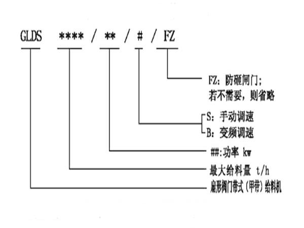 扇形閥門(mén)帶式(甲帶)給料機(jī)型號(hào)說(shuō)明:
